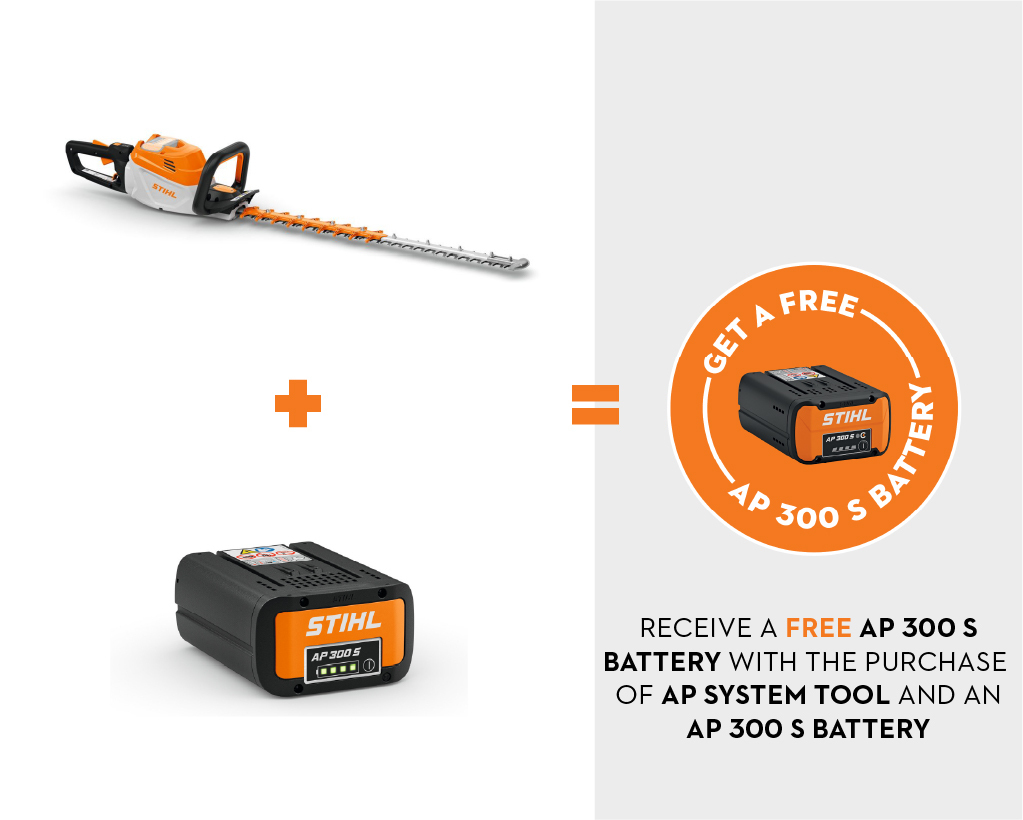 The STIHL HSA 100 battery hedge trimmer offers effective support in horticulture and landscaping, as well as public authorities, for trimming and pruning large hedges efficiently and conveniently in noise-sensitive areas. The STIHL HSA 100 is a very high-performance hedge trimmer with a maintenance-free EC engine. The engine is powered by lithium-ion batteries from the STIHL AP-System. It always delivers a constant stroke rate even under load, and even when cutting thicker branches. The double-sided cutting blade delivers precise cuts, both when trimming and pruning. If tough branches block the blade system, you can quickly get going again simply by changing the rotation direction.